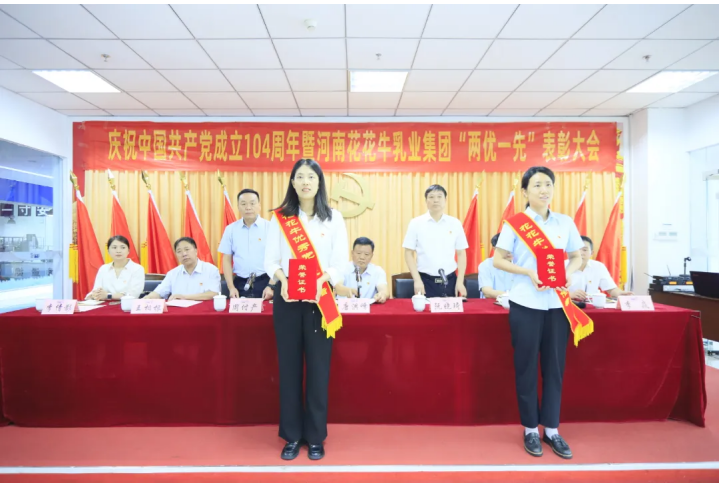 為弘揚偉大建黨精神,深化作風建設,凝聚奮進力量,7月7日,河南花花牛乳業集團召開慶祝中國共產黨成立104周年暨“兩優一先”表彰大會,集團黨委書記、董事長唐洪峰以《以奮進之姿扛使命擔當 繪就花花牛高質量發展新畫卷》為題作專題黨課輔導報告。